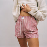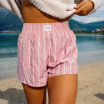 Våre Striped Shorts i rosa er laget i en lett og luftig bomullsblanding, designet for komfort og hverdagsbruk. Den elastiske midjen gir en fleksibel passform, mens de rette beina skaper et comfy vibe.
